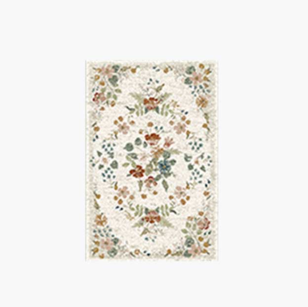 Pretty mute colors that sets off the cream background , soft to walk on and adds a beautiful touch to the room.